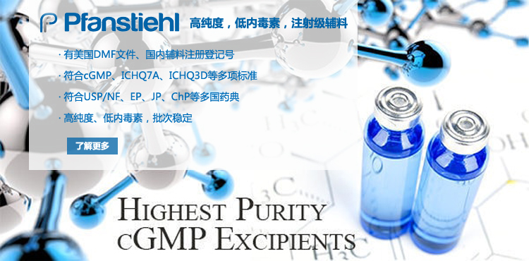 “熱烈祝賀Pfanstiehl的注射級甘氨酸Glycine(G-140)喜獲CDE登記號F20250000403, 這是Pfanstiehl產品獲得的第18個CDE登記號!”甘氨酸在醫藥輔料制劑中應用廣泛,, 可作為緩沖劑,增溶劑,穩定劑等,具有諸多優勢。Pfanstiehl秉承一貫高品質理念,為滿足全球生物制藥行業對于高品質甘氨酸的需求,隆重推出的注射級甘氨酸Glycine (G-140), 具有超高純度,超低內毒素,超低金屬殘留的特點,單獨檢測29種金屬離子,并且新增DNA,RNA,DNA酶,RNA酶和脂肪酶,亞硝酸鹽等多項質量指標的檢測,符合多國藥典規定(USP, EP, BP, JPE, ChP),可用于生物治療性藥物和疫苗的生產。產品信息:· 產品名稱:Glycine, High Purity, Low Endotoxin, Low Metals, USP, EP, BP, JPE, ChP (G-140)· 中文名稱:甘氨酸· 分子式:C2H5NO2· 分子量:75.07 g / mol· CAS號:56-40-6· 產品貨號:G-140產品特點: · 超高純度,超低內毒素,超低微生物含量,超低金屬雜質殘留· 質量指標新增DNA,RNA,DNA酶,RNA酶,脂肪酶和亞硝酸鹽檢測· 符合多國藥典:USP, EP, BP, JPE, ChP· 符合ICH Q3D標準· 符合GMP標準· 已獲DMF和CDE登記號 產品應用:· 緩沖劑· 穩定劑· 增溶劑如果您對Pfanstiehl注射級別Glycine G-140感興趣,歡迎聯系Pfanstiehl 中國區代理商北京西美杰科技有限公司獲得如下詳細的產品概況說明文件和測試樣品。Pfanstiehl Inc.最新產品系列如下,歡迎聯系北京西美杰科技有限公司獲取100g裝免費樣品。北京西美杰科技有限公司為Pfanstiehl中國代理,為客戶提供完善的技術支持與售后服務。歡迎撥打西美杰客服電話400-050-4006或者登陸網站www_xmjsci_com.trrjsznn.cn了解更多信息。 更多>西美杰介紹